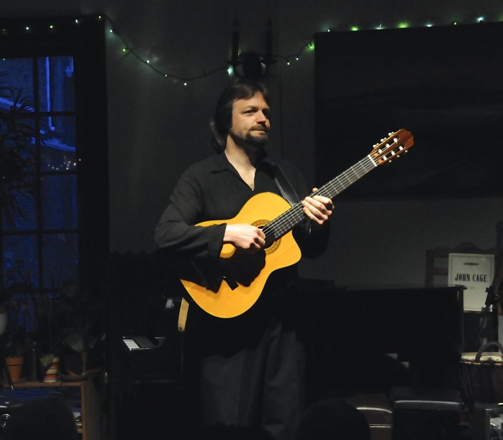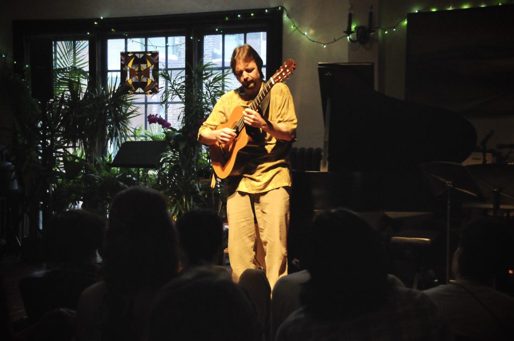 Intimate in activity, playing an instrument solo is an ultimate form of creative self expression. One communicates their feelings, thoughts and ideas freely in a format which expresses “this is who I am.” Austere in nature, playing solo guitar it has its freedoms as well as its barriers, like anything else in life. This is true for any instrument and especially the guitar, which has no damper pedal (unlike that of the beautiful piano) which assist in the endless sustain or holding of lower or bass notes (or any for that matter) of choice while one soars, playing melodies, chords and improvising above. Any notes sustained on the guitar are done with the fingers or open strings as a drone, making it a very challenging instrument to play with a fully orchestrated sound. Still one can work out ways to play multiple lines at once, but this is a formidable skill to master, taking much time and patience. Yet this is truly part of the resident beauty of this instrument. The challenge of playing the guitar solo and making something beautiful and complete in form is one of its greatest joys!